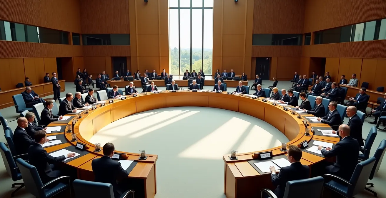 Un néophyte pourrait voir la disposition d’une salle de conférence comme un simple détail logistique. Pour un diplomate, c’est le premier acte de la négociation. La chorégraphie du pouvoir commence bien avant les premiers mots échangés. L’emplacement d’une délégation, sa proximité avec le médiateur, sa position par rapport à une partie adverse, la forme même de la table (ronde pour l’égalité, rectangulaire pour la confrontation) sont des messages puissants sur le statut et les intentions de chacun.